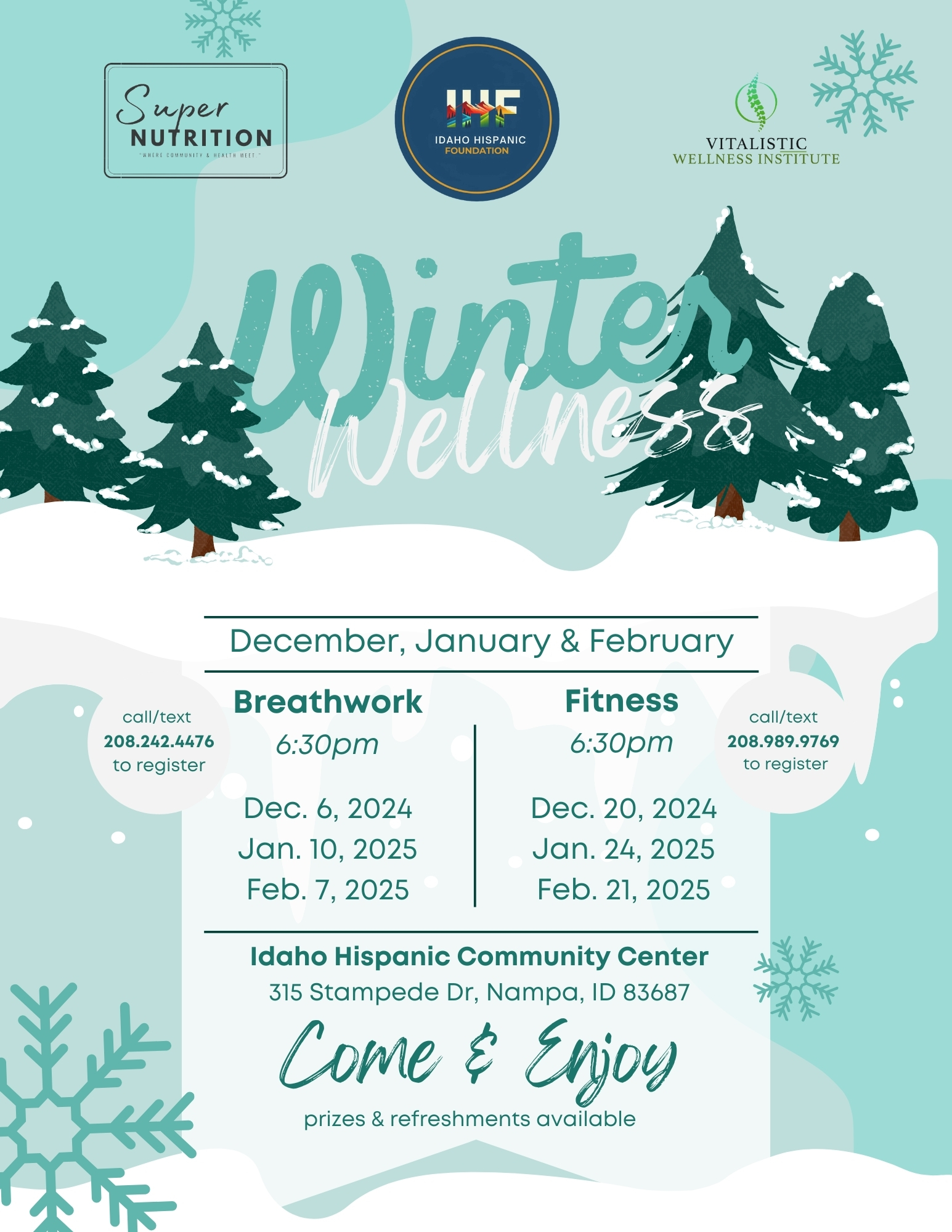 We’re excited to announce Winter Wellness, a community-focused health series at the Idaho Hispanic Community Center from December through February, brought to you by Vitalistic Wellness Institute and Super Nutrition!